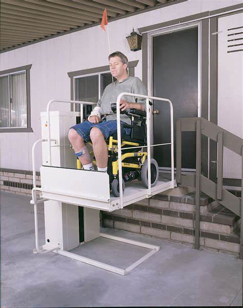 Use an ADA Business ADA Commercial Vertical Platform Elevator Lift lift like a mini home elevator. Often called a porch lift, a VPL Vertical Platform residential vertical platform wheelchair lift is a cost-effective home accessibility solution to give scooter and wheelchair users an alternative to entryway or deck steps. |